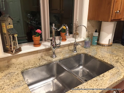 We then installed the faucet which I LOVE! We buy Moen faucets because they are beautiful, but also because they have a lifetime guarantee.